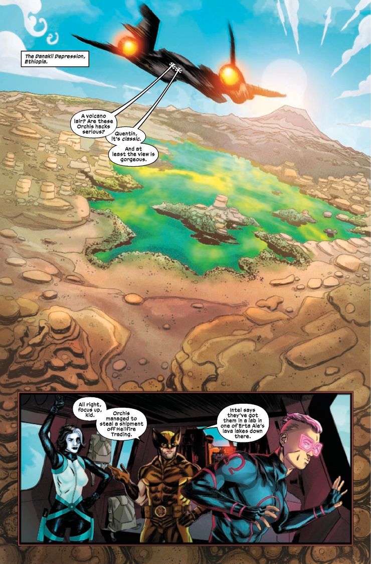 El cebo utilizado para atraer a X-Force es un envío robado de Hellfire Trading Company, que contiene plantas cultivadas en Krakoa con propiedades milagrosas que los mutantes están “regalando” a otros países para asegurar buenas relaciones diplomáticas. Si bien estas plantas solo pueden crecer en Krakoa, Wolverine está preocupado por el hecho de que, según la inteligencia de Beast, Orchis las está aplicando ingeniería inversa. Esto podría tener efectos potencialmente desastrosos, ya que la tecnología Krakoan es ahora un recurso fundamental para los mutantes: por ejemplo, les permite viajar por todo el mundo a través de portales que solo pueden usar los mutantes. Si es pirateado, Orchis podría usarlo para infiltrarse en Krakoa y causar una masacre, o para construir armas aún más peligrosas. Esta es la razón por la que Logan está tan decidido a recuperar los bienes robados y destruir la investigación de Orchis.