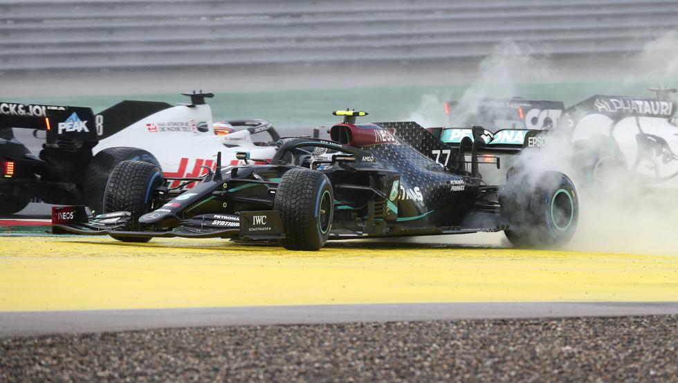 La salida del GP de Turquía de F1, con Ocon y Bottas trompeando en la curva 1