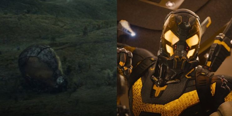 En el quinto episodio, hay una colección de cabezas de piedra gigantes en The Void. Entre ellos había un gigantesco casco Yellow Jacket, casi idéntico al de Darren Cross en la primera Hombre Hormiga película. Las ligeras diferencias se pueden atribuir a que provienen de una línea de tiempo separada o al efecto de la poda.