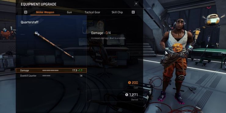 Una forma más permanente de mejoras es personalizar armas y otros elementos. Al visitar la estación de policía, Ray ofrecerá actualizar cualquier artículo que Zixu tenga equipado actualmente. Tenga en cuenta que Funk no actualizará las armas en el campo, ni siquiera las compradas en su tienda. Esto significa que los jugadores deberán sobrevivir a su carrera actual y llevar dichos artículos a Ray. Además, cualquier arma, equipo o chip adquirido a través de la inversión se puede actualizar en su terminal de escenario.