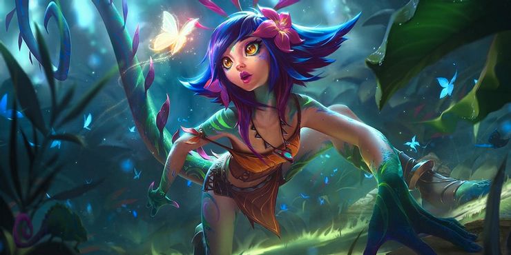 Neeko es una especie de híbrido camaleón-humano que es extremadamente colorida y tiene una voz aguda y cursi que acompaña a su juego en el juego. Sus líneas de voz promueven esta idea de que es inocente y excitable mientras lucha contra oponentes o descubre más de Runaterra.