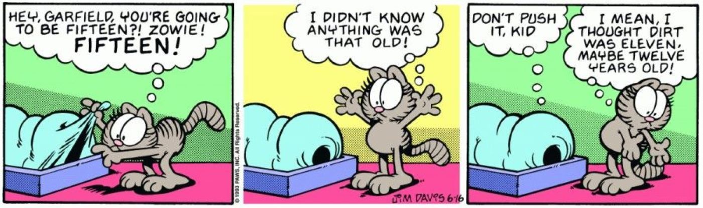 Como uno de los más divertidos. garfield cómics protagonizados por Nermal, esta joya ocupa nuestro primer lugar en la lista. En un giro intrigante, el propio Garfield ni siquiera aparece en esta tira en particular. En cambio, la atención se centra en Nermal y su hilarante monólogo, que se dedica exclusivamente a insultar al gato mayor. Lo que distingue a este cómic es la deliciosa combinación de inocencia y comentarios descarados cuando Nermal expresa incredulidad de que Garfield tenga quince años, insinuando que nada podría ser tan viejo. El humor de esto garfield La comedia se intensifica cuando el gato más joven sugiere seriamente que creía que la suciedad tenía, como máximo, doce años.