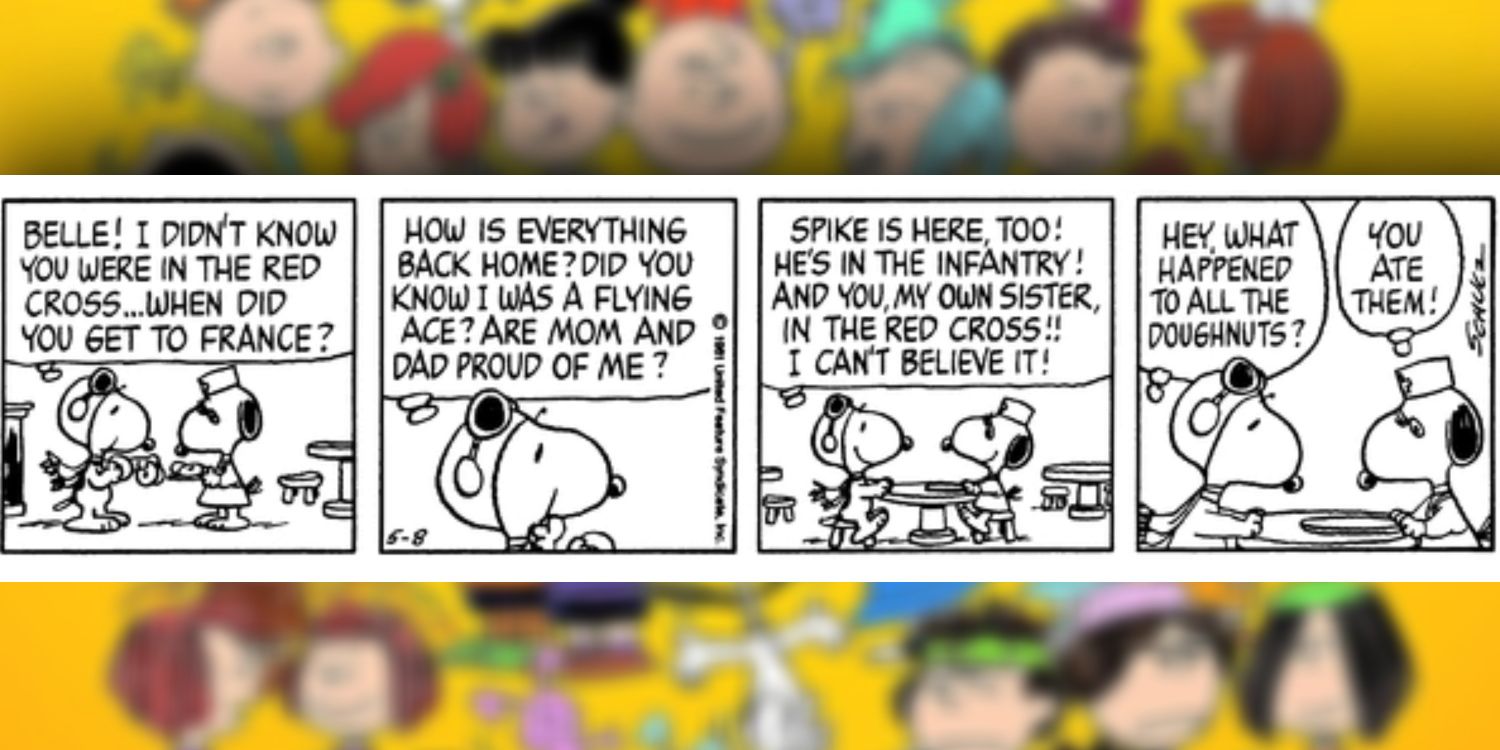 Snoopy y su alter ego del as de la aviación de la Primera Guerra Mundial han tenido momentos interesantes y a menudo se han metido en problemas. Snoopy pasa sus días soñando con enfrentarse al Barón Rojo, una broma recurrente con un origen histórico sorprendente. De hecho, Snoopy está tan involucrado en su vida de fantasía que incluso sus hermanos se involucran en la “diversión”. De hecho, en esta tira de mayo de 1981, Snoopy está eufórico al ver a su hermana Belle en su versión ficticia de Francia. A Snoopy siempre le han gustado los dulces, pero se acelera una vez que se distrae hablando con su familia.