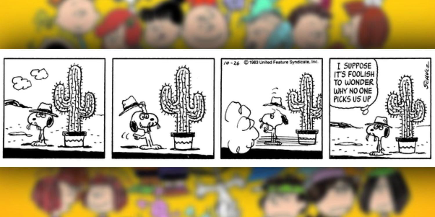 Los hermanos de Snoopy son algunos de Miseria‘ personajes más extraños, como lo muestra su hermano Spike que vive en el desierto con un cactus como su único amigo. Cada una de las Miseria Los personajes existen en su propio mundo imaginario, y el humor proviene de cómo sus fantasías y suposiciones se entrelazan con la vida real. En esta tira de octubre de 1983, Spike se ve obligado a aprender por las malas que su amigo cactus es un obstáculo para viajar. La tira muestra perfectamente cómo Miseria Los personajes logran aferrarse a sus fantasías incluso cuando el mundo real invade lo imaginario: Spike admite que puede ver la perspectiva del conductor, pero nunca se le ocurre renunciar a su quisquilloso amigo.