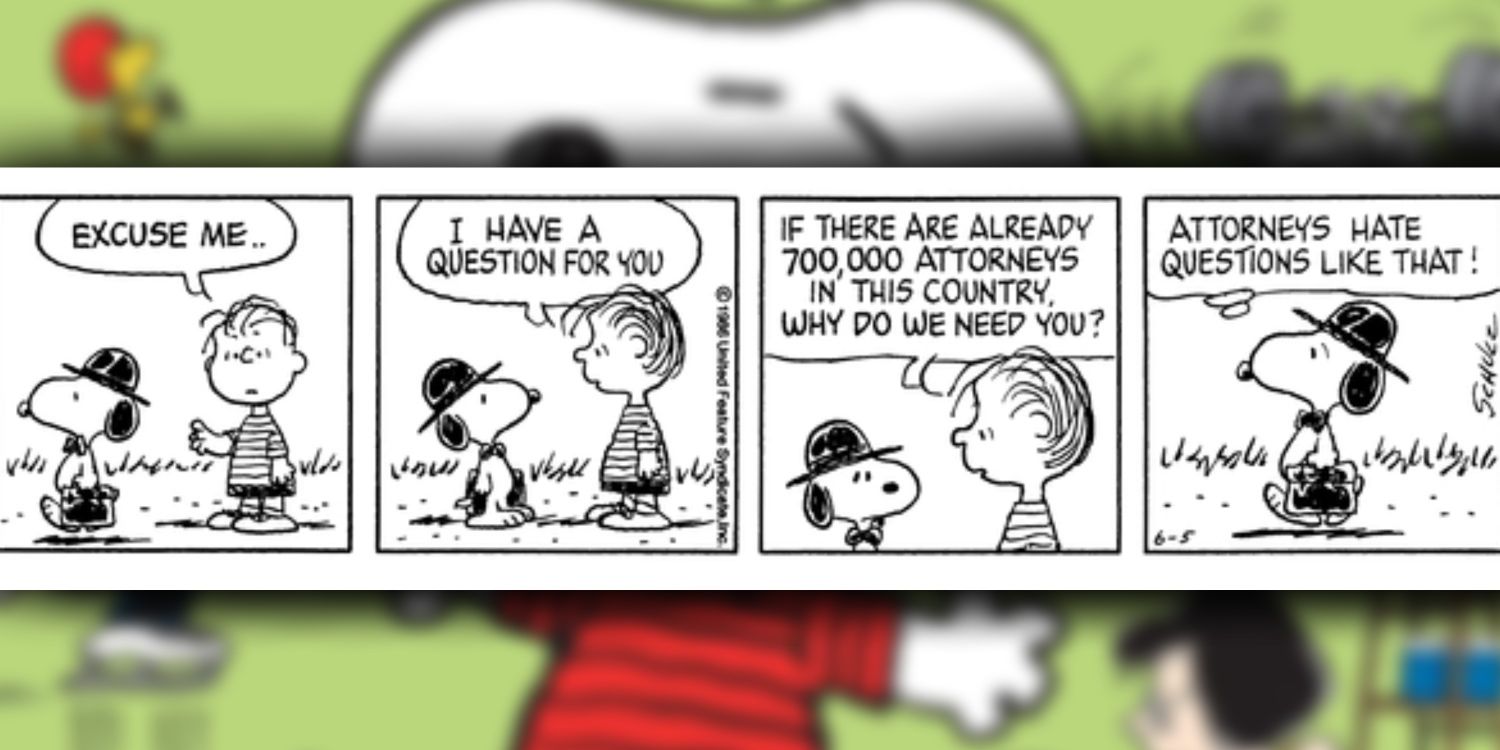 Por mucho que le gusten las galletas, a Snoopy le encanta pensar en alter egos. En esta tira de 1986, Snoopy adopta su personaje de Abogado Mundialmente Famoso, la identidad bajo la cual ha defendido a clientes tan famosos como Peter Rabbit y un espantapájaros. Snoopy fue incluso el abogado de Peppermint Patty cuando luchó contra el código de vestimenta de su escuela y fue el abogado de Linus cuando quiso demandar a Sally Brown por golpearlo con una lonchera. De nuevo, Miseria demuestra la naturaleza duradera de la imaginación: puede que Snoopy no tenga una buena respuesta a la pregunta de Linus, pero aún así se las arregla para responder con carácter.