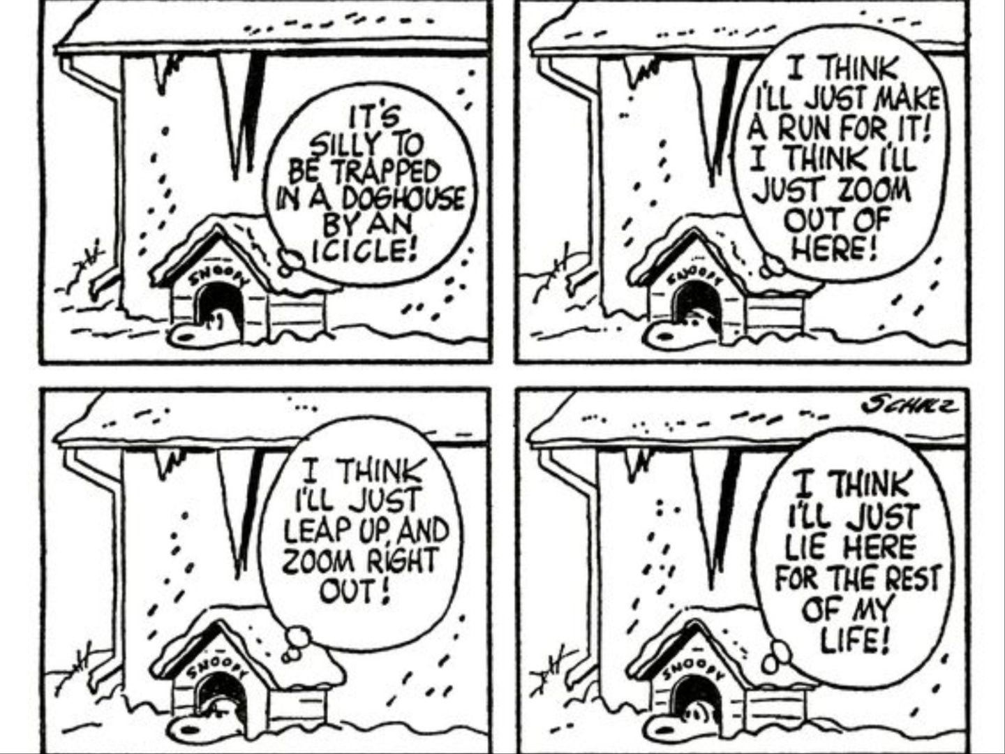 “/> Snoopy no suele ser un perro ansioso. Sin embargo, tiene sus factores desencadenantes que lo aterrorizan por completo. Uno de sus mayores temores son los carámbanos que cuelgan sobre su caseta de perro.
