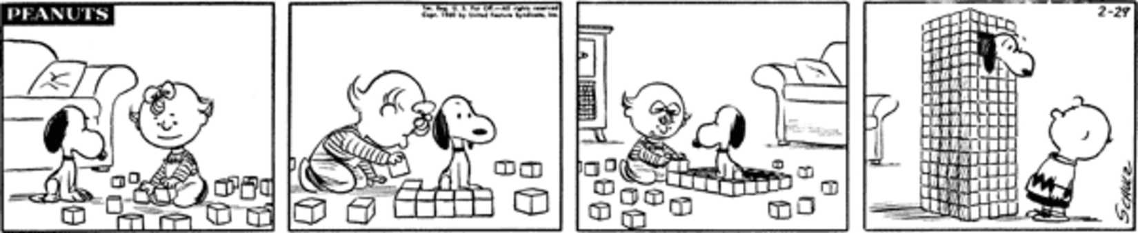7 Sally Walls Snoopy en una torre de bloques de construcción