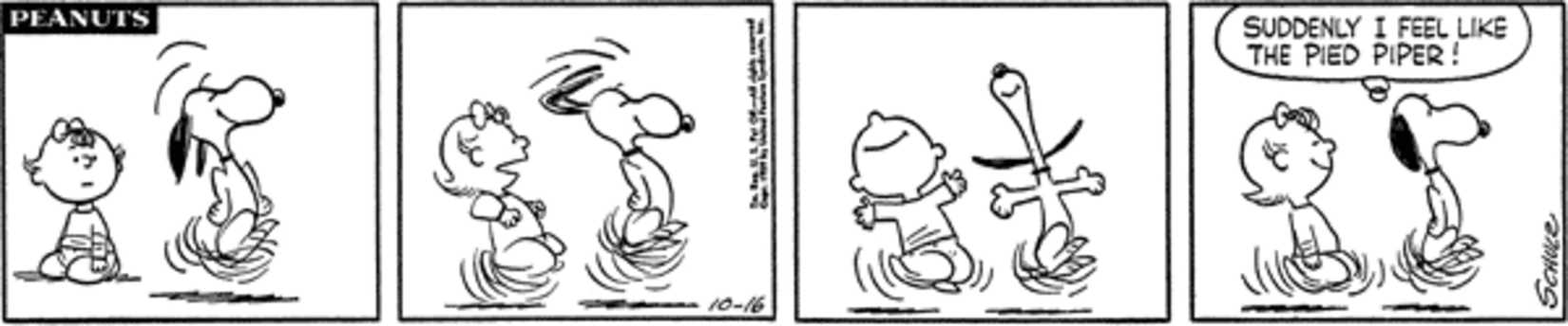 Como resultado, Snoopy comienza a sentirse como el Flautista, el personaje ficticio del cuento popular del Flautista de Hamelin, donde un flautista usa su instrumento mágico para guiar a los niños del pueblo en la historia. Al tomar nota de cómo guía a Sally en el baile feliz, el vínculo de la pareja se muestra plenamente, así como el inesperado conocimiento de Snoopy de los cuentos populares clásicos.