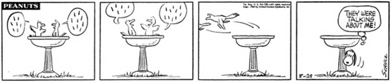 Las cosas eventualmente mejorarían entre Snoopy y los pájaros, comenzando con su amistad con Woodstock y luego su tiempo como líder de una tropa de exploradores compuesta por todos los pájaros, los Beagle Scouts. Sin embargo, antes de aquellas fatídicas relaciones con importantes aves del Miseria En el universo, Snoopy estaba atrapado aterrorizado por los arrendajos azules o siendo objeto de chismes por parte de algunos pájaros mezquinos.
