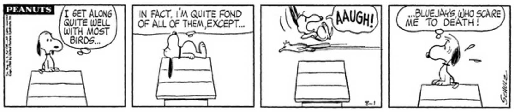 Si bien Snoopy eventualmente se llevaría bien con otras especies de aves, por alguna razón, son específicamente los arrendajos azules los que lo hacen temeroso como ningún otro. No es muy frecuente que los lectores vean a Snoopy asustado y conmocionado, y este cómic es una mirada interesante a la personalidad del querido beagle.