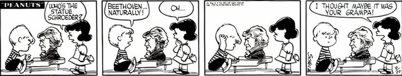 Mientras Schroeder intenta tocar el piano, Lucy se acerca a él y le comenta sobre el busto que Schroeder tiene con él. Lucy le pregunta a Schroeder quién es, y Schroeder le dice (con bastante altivez) que es Beethoven. Lucy luego explica que pensó que podría ser el abuelo de Schroeder, y el prodigio del piano simplemente permanece en silencio.o de lo contrario seguramente se enfadaría con Lucy por su ignorancia.