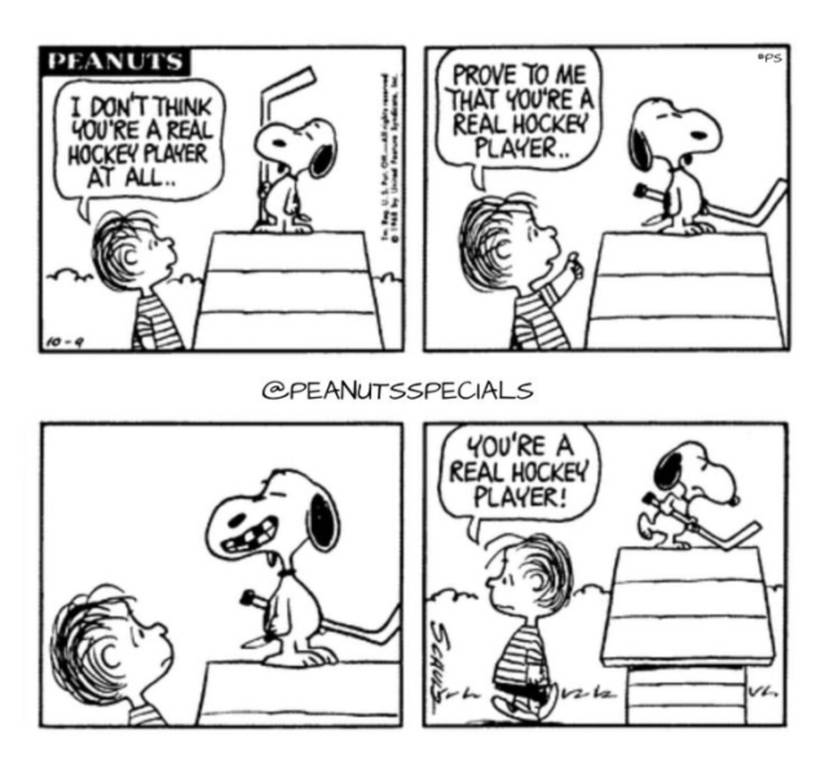 Dada la tendencia de Snoopy a mentir, tiene sentido que Linus no se tome demasiado en serio las palabras de Snoopy a menos que haya alguna prueba definitiva que respalde su historia. Al menos a Linus le va mejor que a Charlie Brown cuando se acerca a Snoopy como su personaje de jugador de hockey, ya que Snoopy tenía la costumbre de golpear a Charlie Brown en la cabeza con su palo de hockey.