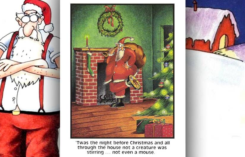 Dado que la mayoría de sus chistes ocurren en un solo panel, Larson tiende a usar personajes famosos y celebridades de la vida real cuando hay alguna parte de su imagen pública que se puede confiar en que los lectores comprenderán al instante. En el caso de Santa, Larson tenía mucho para elegir.
