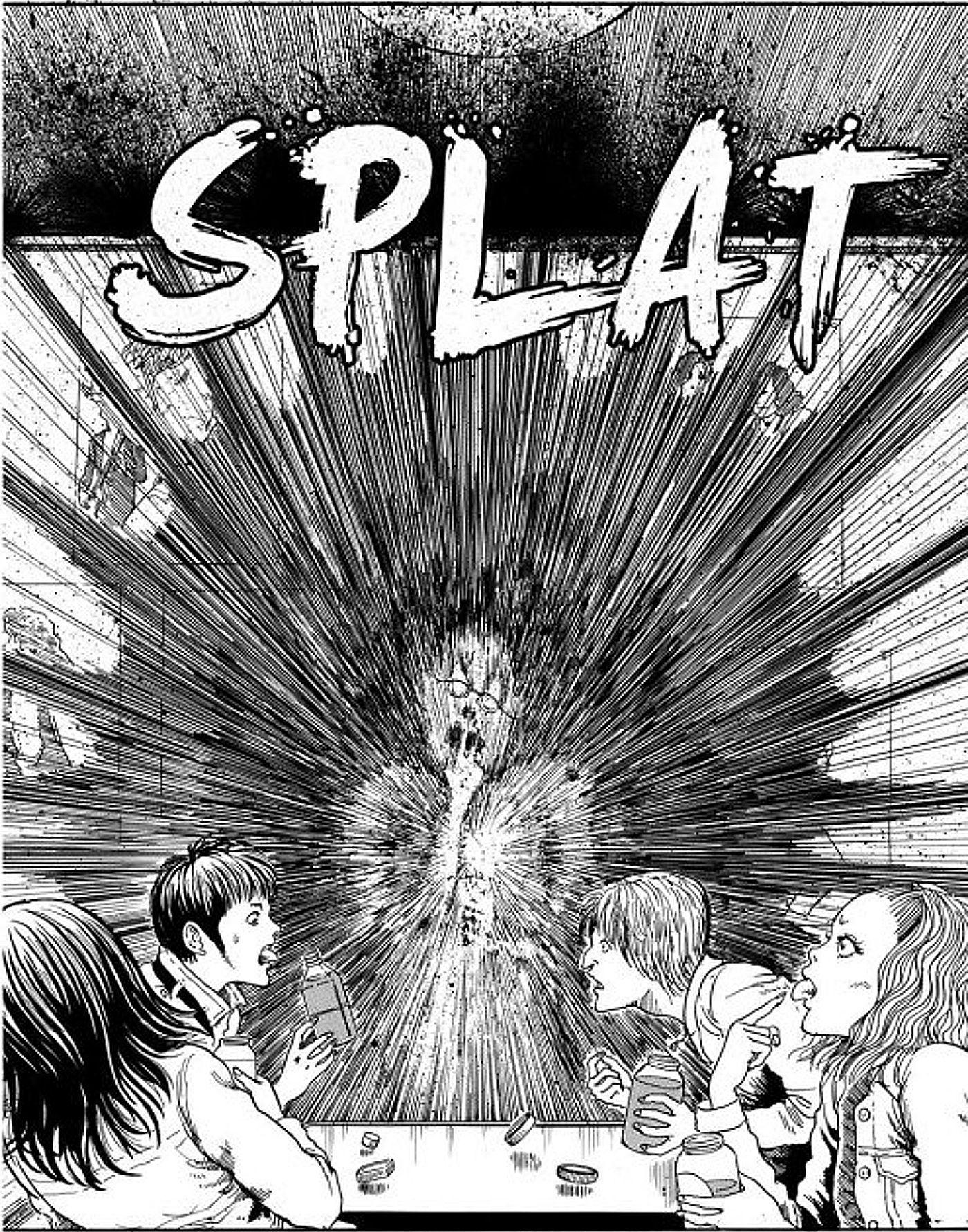 Lo brillante de este inquietante dibujo es que no es la primera vez que los lectores se encuentran con un momento como este en la historia. Junji Ito Colocado en realidad prepara a los lectores para lo que les espera cuando Sugio lleva a sus amigos a la casa de Ogi para probar un delicioso néctar. Cuando llegan, encuentran a Ogi aplastado contra la pared en una exhibición espantosa. Sin embargo, Es cuando Yasumin es salpicado que las cosas se ponen inquietantes..