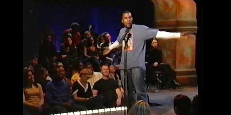 Kanye creó impulso para sí mismo actuando en Def Poetry Jam. Mos Def lo presentó como “el futuro del hip-hop”. Se lanzó a una interpretación hablada, “Self Conscious”, que más tarde se convertiría en su canción “All Falls Down”.