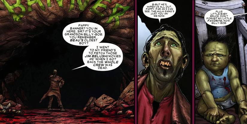 Aunque se conocen los nombres de la mayoría de los miembros de la pandilla de Hulk, funcionan casi en su totalidad como una unidad. Pero si hay que destacar a uno, es Billy-Bob Banner, y por las mejores razones posibles. Después de que Wolverine comete su sangrienta masacre de la pandilla de Hulk y es devorado por Pappy Hulk, el siguiente capítulo de la historia lo narra Billy-Bob, el único nieto de Hulk que estuvo ausente del baño de sangre.