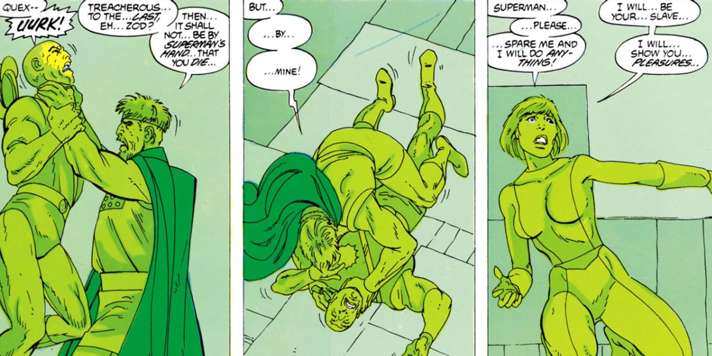 “/> Superman a menudo ha estado en desacuerdo con su némesis, el general Zod, pero en un momento vio al héroe matarlo a él y a varios otros kryptonianos. Durante la carrera de John Byrne en Superman, el Superman poscrisis se encontró con Zod y varios otros fugitivos de la Zona Fantasma en un universo alternativo. Al reconocer que los villanos eran demasiado peligrosos para mantenerlos con vida, Clark quitó el poder a los kryptonianos con kriptonita dorada y los expuso a la kriptonita verde mucho más letal. Superman, un incondicional protector de la vida, simplemente se quedó quieto y observó cómo sus oponentes se mataban unos a otros y rogaban por sus vidas.