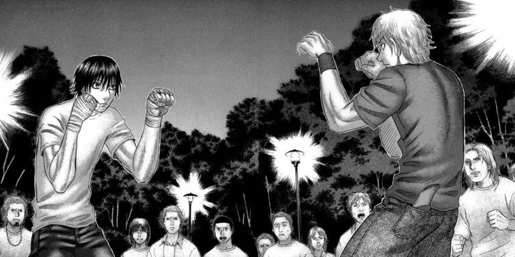 Puño de la Estrella del Norte es una historia de artes marciales en un mundo post-apocalíptico con batallas increíbles en todas partes. Esta historia es Bruce Lee conoce Mad Max Satisface Dragon Ball Z. Si bien la animación no ha envejecido bien en muchas áreas, el manga aún posee un arte fenomenal que muestra escenas de batalla bien dibujadas. Probablemente no haya muchas batallas mejores que Kenshiro vs Raoh en anime y manga.