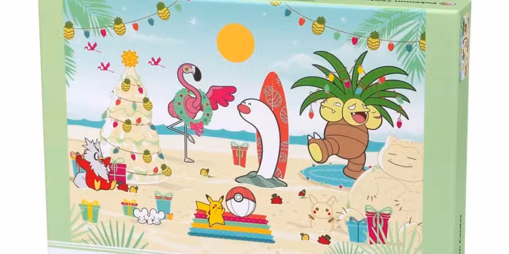 El tema navideño de este año se centra en la playa, y el rompecabezas Pokémon Holiday 2025 lo refleja perfectamente. El rompecabezas muestra a Pikachu, Wiglett, Alolan Exeggutor, Flamigo y otros reunidos para una fiesta en la arena, con el océano y el sol visibles detrás de ellos. El rompecabezas de 1.000 piezas cuesta 19,99 dólares y es uno de los artículos menos costosos de la colección de este año.