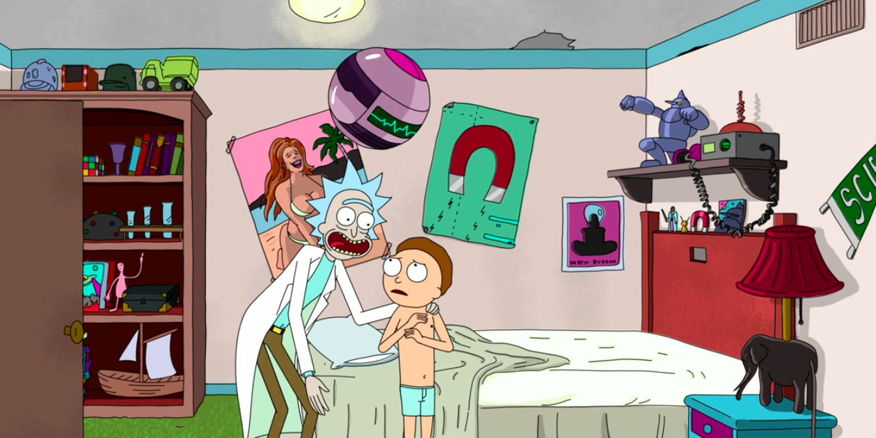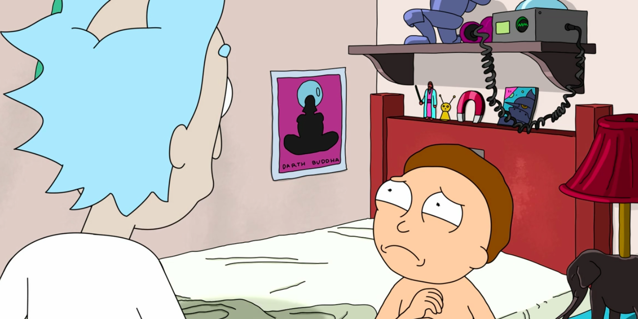 Algunos detalles en la habitación de Morty incluyen una pequeña figura de acción de Jesús sosteniendo un sable de luz y un póster de lo que parece ser la silueta de Darth Vader levitando mientras está en posición de loto, solo con la etiqueta aclaratoria "Darth Buddha". Si Guerra de las Galaxias es una religión en este universo o Morty solo tiene gustos extraños, este es un detalle genial.