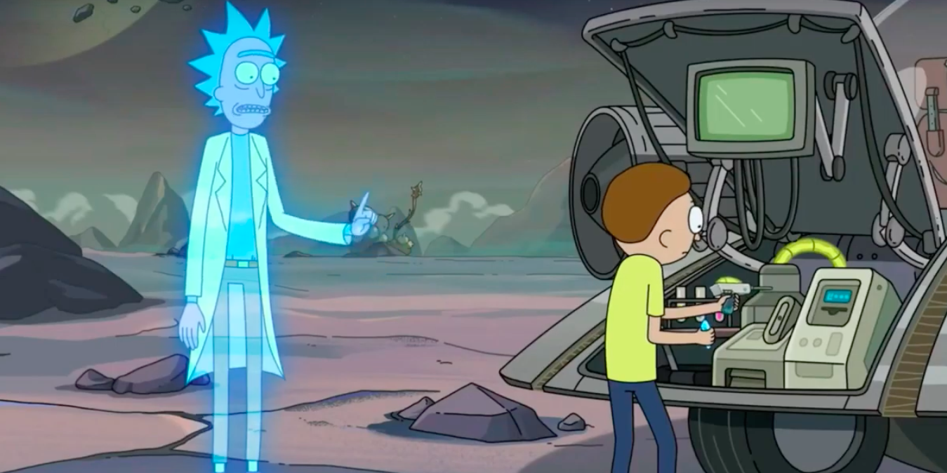 Esto lo hace más extraño cuando Rick tiene un holograma de sí mismo, porque se parece más a un holograma que al propio Rick. El color azul es una referencia clara a los hologramas en Guerra de las Galaxias, una galaxia muy, muy lejana, donde las personas son capaces de viajar a la velocidad de la luz pero no tienen hologramas de aspecto realista.