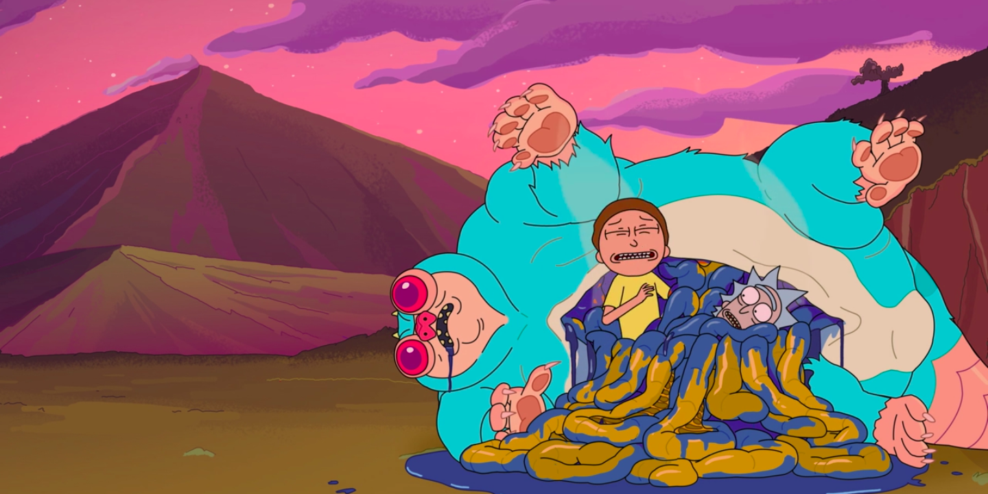 En una escena, Rick y Morty abrieron a un compañero animal que aman y se metieron en sus entrañas para mantenerse calientes antes de que un invierno helado caiga sobre ellos, evocando la muerte del tauntaun en El imperio Contraataca. Entonces el invierno no llega después de todo.