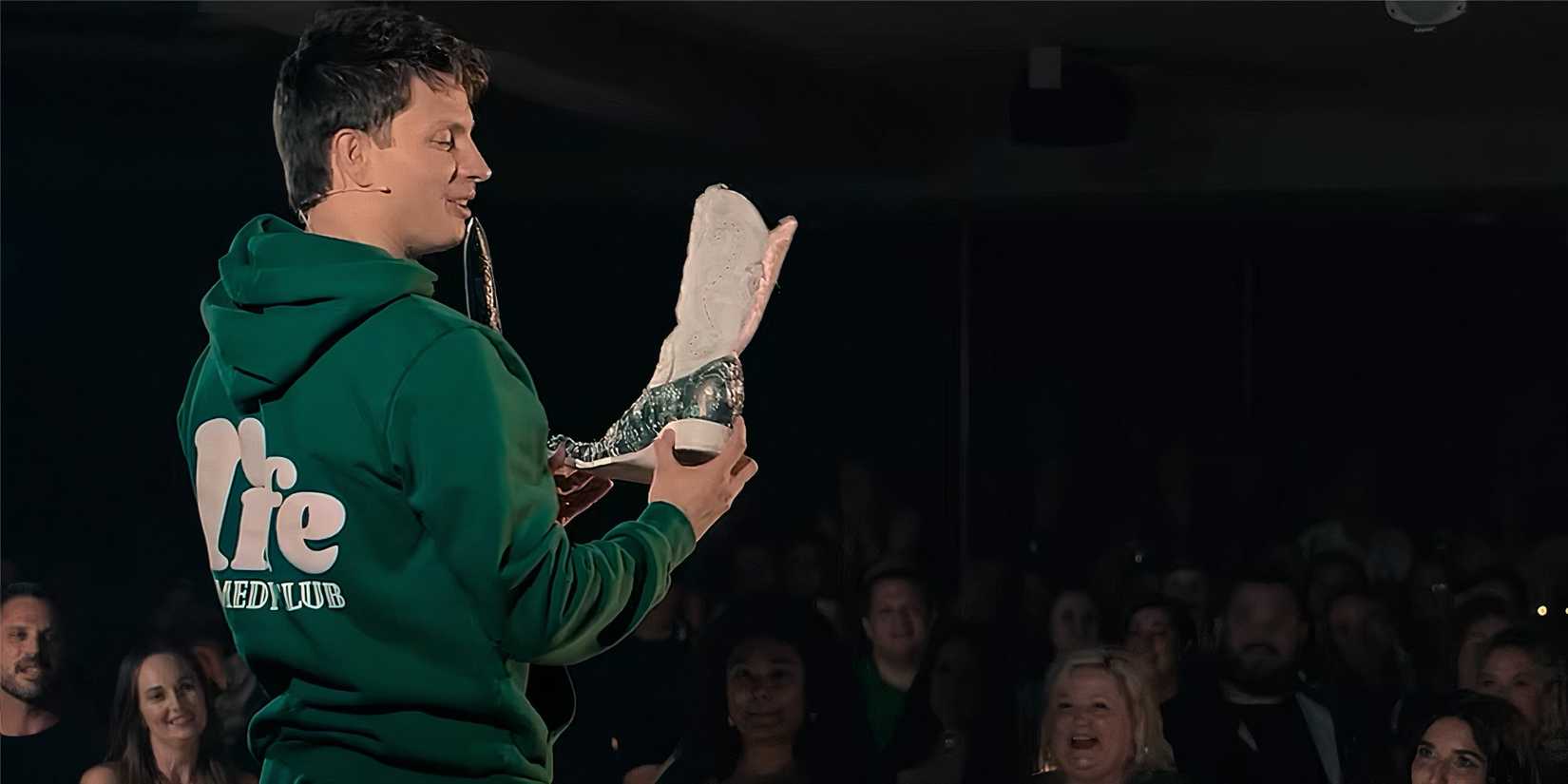 De Netflix Matt Rife: Lucid – Un especial de trabajo en equipo El espectáculo comienza con fuerza cuando Rife señala el atuendo excéntrico de temática del Oeste de un miembro de la multitud. El hombre tiene un gran sombrero de vaquero y botas con puntas escandalosamente largas que hacen que parezca casi imposible caminar con ellas. Rife consigue que el miembro de la audiencia le permita examinar su bota en el escenario para que todo el público pueda presenciar lo extrañas y divertidas que son las botas. El miembro de la multitud parece estar disfrutando de la suave crítica de Rife, incluso cuando Rife le dice: “Pensé que eras Cam Newton” en referencia al ex mariscal de campo de la NFL que también tiene un sentido excéntrico de la moda. Si bien Rife se burló un poco de algunos miembros de la audiencia, su material fue más colaborativo que insultante.