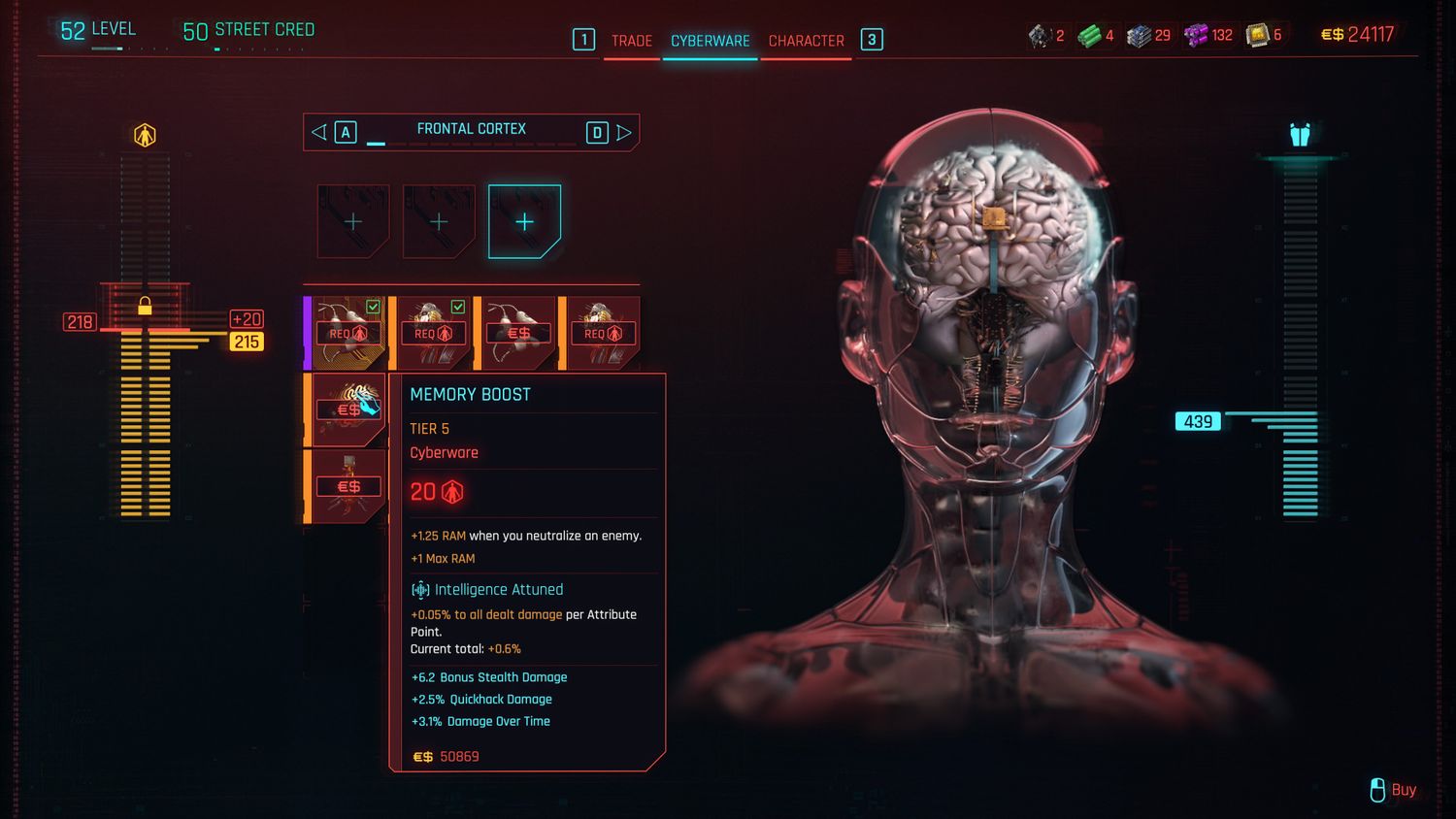 Al utilizar Memory Boost, vale la pena elegir un cyberdeck avanzado con una gran cantidad de RAM. Tener un Cyberdeck menos avanzado con RAM reducida significa que se pueden desperdiciar unidades de RAM adicionales generadas por las eliminaciones. Memory Boost es una elección esencial para cualquier compilación basada en piratería y una excelente herramienta para mejorar las capacidades de piratería de V.