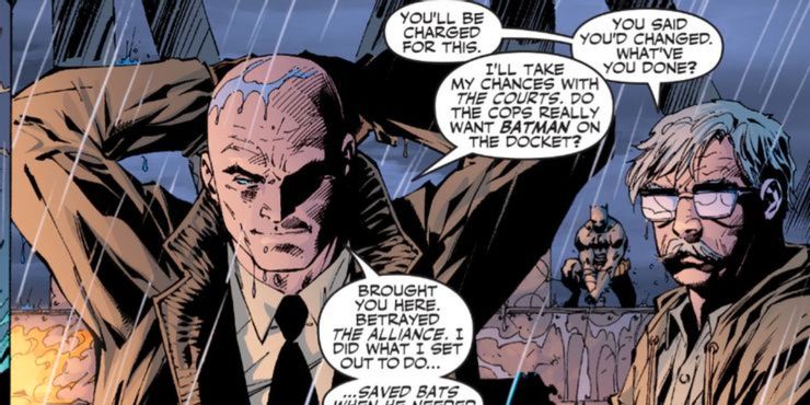 Esta historia representa una de las tomas más matizadas de Two-Face, ya que establece una alianza con el comisionado Gordon e intenta mantener cierta apariencia de ley y orden en la ciudad, incluso operando desde el Ayuntamiento de Gotham.