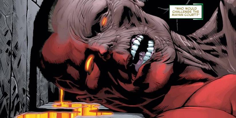 Para contextualizar, este cómic se publicó en 2012, un año en el que todos estaban obsesionados con la posibilidad de que el mundo se acabara y cómo se relacionaba con la cultura maya. Esa obsesión se trasladó a los cómics, en este caso protagonizado por Hulk Rojo, donde él y Alpha Flight se deleitan con la vista más extraña: un templo maya en medio de Canadá. Han incitado la ira de los dioses mayas con la esperanza de alimentarse de suficiente fuerza vital para otorgarles el poder suficiente para volver a cobrar prominencia.