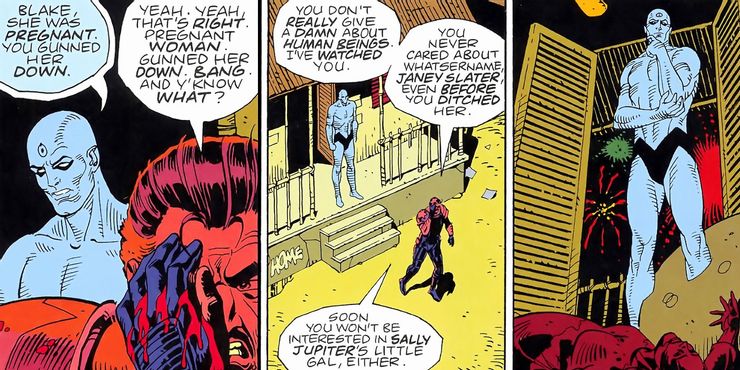 The Comedian es tanto un homenaje a Peacemaker como un presagio de dónde iría Peacemaker en DC Comics. Se volvería en muchos aspectos tan oscuro y violento como el Comediante y, en muchos casos, incluso más.