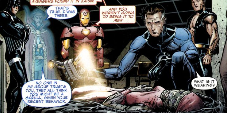 Los Illuminati jugaron un papel importante en otro evento masivo de Marvel Comics, invasión secretaEl verdadero alcance de su participación se manifiesta en Nuevos Vengadores: Illuminati # 5, cuando examinan el cuerpo de un Skrull que se había hecho pasar por Elektra.