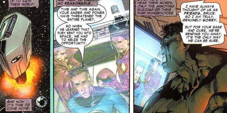 Uno de los mejores cómics Illuminati y uno de los más importantes es Increible hulk # 92, en el que el consejo secreto destierra arbitrariamente a Hulk de la Tierra enviándolo al espacio exterior. Se estrella contra Sakkar, lo que lleva a la planeta hulk historia, uno de los mejores arcos de Hulk de todos los tiempos.