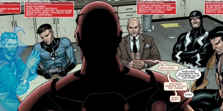 Uno de los mejores cómics Illuminati es el primero. El equipo hace su primera aparición en nuevos vengadores #7, cuando Iron Man convoca el consejo secreto para discutir el surgimiento de Sentry, uno de los personajes más poderosos del Universo Marvel.
