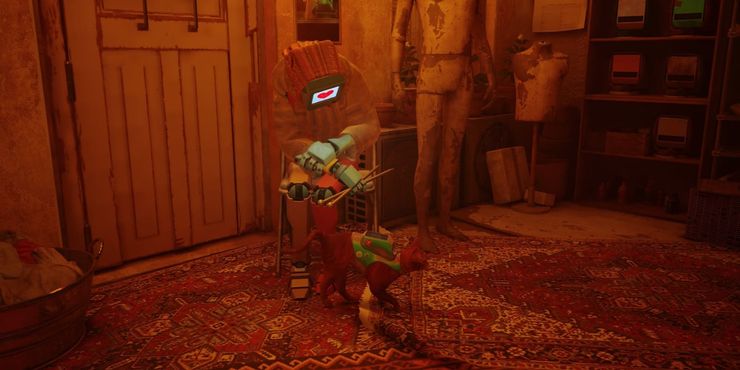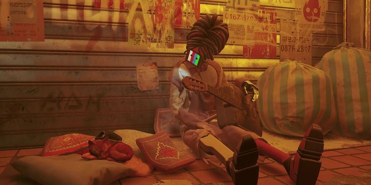 Hay varias cosas parecidas a gatos que los jugadores pueden hacer en Extraviado, que incluyen acurrucarse con algunos robots que son amigos del protagonista. Vale la pena intentarlo con todos los NPC que lo permitan, ya que tienen diferentes reacciones que pueden ir desde aterrorizados (como con los Pacificadores) hasta conmovedores, como es el caso del vaquero.