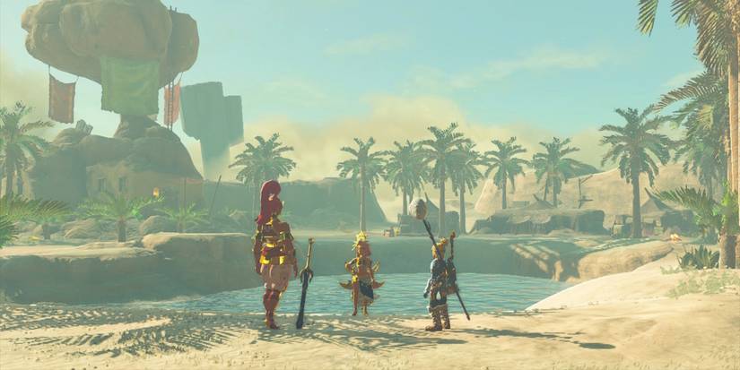 El conjunto de armadura Desert Voe, que no es sorprendente que sea de Gerudo Town en Zelda: Lágrimas del Reinoestá diseñado específicamente para Gerudo y proporciona a Link resistencia al calor. Consta de tres piezas: la Diadema, hombrera y pantalones de Desert Voe.
