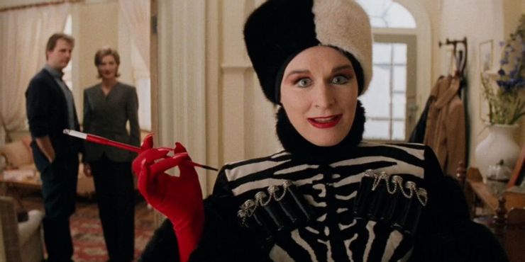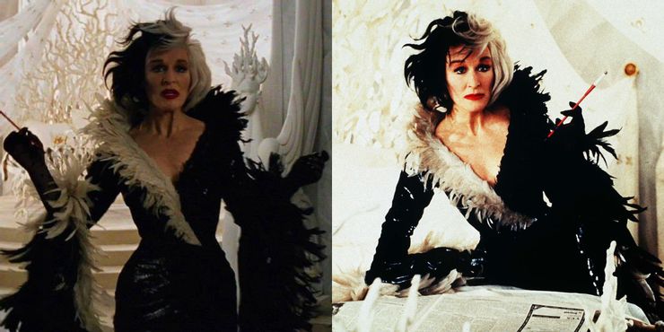 Para transformar a Glenn Close en el asesino de la moda conocido como Cruella, el ganador del Oscar Anthony Powell y Barbara Matera tuvieron que darle dinamismo y glamour al personaje. Esto significaba que Cruella tenía que ser vista siempre con atuendos llamativos, incluso en la oficina. En la versión de acción en vivo de 101 Dálmatas, Cruella llega como House of De Vil con un conjunto blanco y negro.