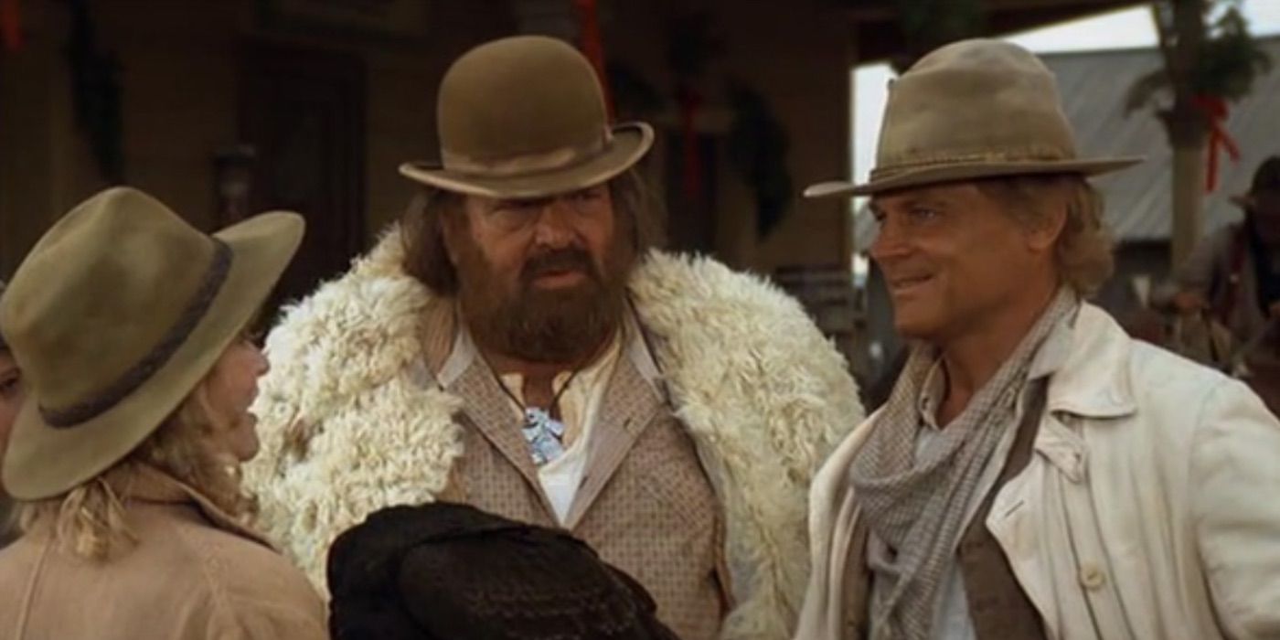 “/> Terence Hill y Bud Spencer, nacidos como Mario Girotti y Carlo Pedersoli, fueron alentados a adoptar nombres que sonaran más estadounidenses para distinguir sus películas de los westerns italianos. La pareja protagonizó una serie de comedias del oeste, pero una vez que se establecieron tanto en Italia como en Estados Unidos se diversificaron hacia otros estilos de comedia. Las voces de Hill y Spencer fueron dobladas a menudo para que el público inglés ocultara su fuerte acento napolitano. Sin embargo, esto no afectó su atractivo, ya que la mayor parte de su humor se basaba en payasadas y otras formas de comedia física con raíces en la era del cine mudo. Se especializaron en escenas de lucha elaboradas y cómicas con violencia caricaturesca y exagerada.