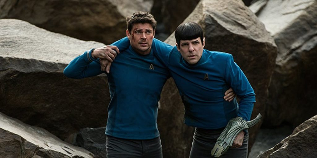 La pareja desarrolló una química tan cercana en la primera película que J.J. Abrams decidió abrir la secuela, Star Trek Into Darkness, dándoles el centro de atención. Kirk y Bones están huyendo de una raza alienígena a través de un bosque teñido de rojo en un planeta lejano, algo así como un giro intergaláctico en la apertura de En busca del arca perdida.