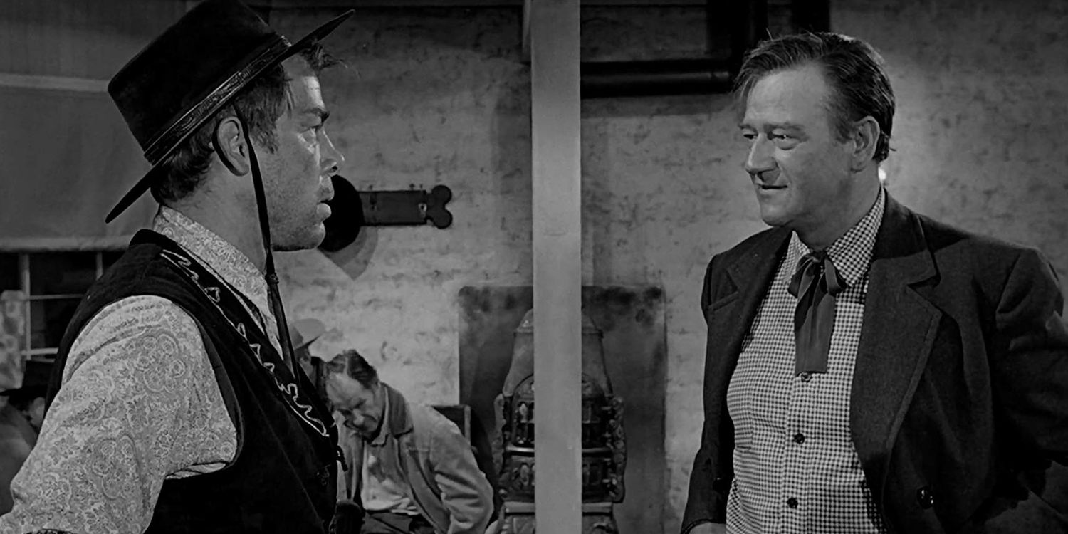 “/> No hay mucha trama en Río Bravo – es más bien una película de reunión en la que un sheriff de un pequeño pueblo y su variopinto equipo esperan a que llegue la pandilla de prisioneros, así que la atención se centra directamente en los personajes, y Howard Hawks reunió un elenco de íconos para darles vida a esos personajes. John Wayne lidera el conjunto como el sheriff junto a Dean Martin y Ricky Nelson como sus ayudantes improvisados. Los vínculos que forman a lo largo del camino son tan cautivadores como cualquier tiroteo. Río Bravo es un raro western cuya protagonista femenina, Feathers de Angie Dickinson, tiene verdadera personalidad y agencia.