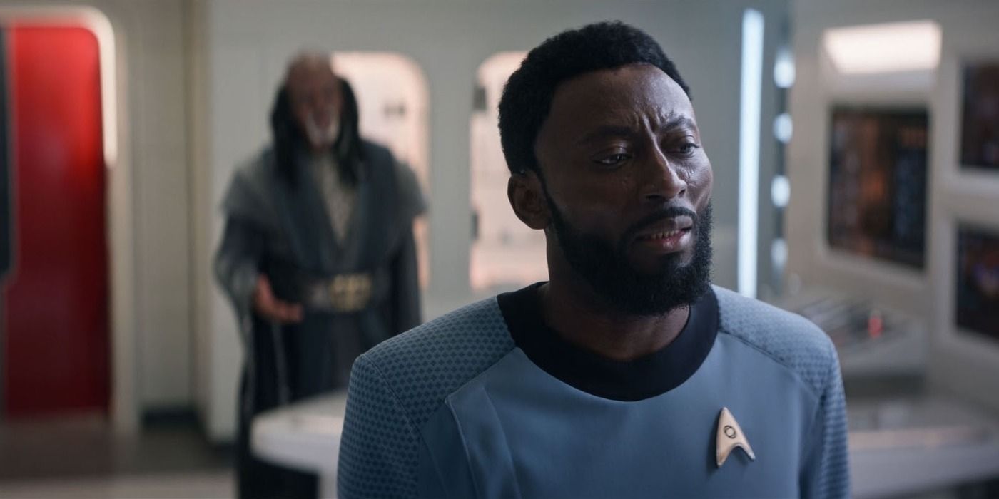 “/> En sus dos temporadas hasta el momento, Nuevos mundos extraños ha abrazado la maravilla de Star Trekcontando historias que recuerdan a los mejores episodios de Términos de servicio y GNV. Pero “Under The Cloak Of War” saca una página de Star Trek: Espacio Profundo Nueve libro para contar una historia más oscura que examina los efectos duraderos de la guerra. Cuando el embajador klingon Dak’Rah (Robert Wisdom) visita el USS Enterprise, los miembros de la tripulación que lucharon en la Guerra Klingon/Federación cuestionan los motivos del ex general de guerra. El Dr. Joseph M’Benga (Babs Olusanmokun) se roba el episodio mientras lucha con su pasado y su trastorno de estrés postraumático, y finalmente toma una decisión impactante que contradice directamente la filosofía del Capitán Christopher Pike (Anson Mount).