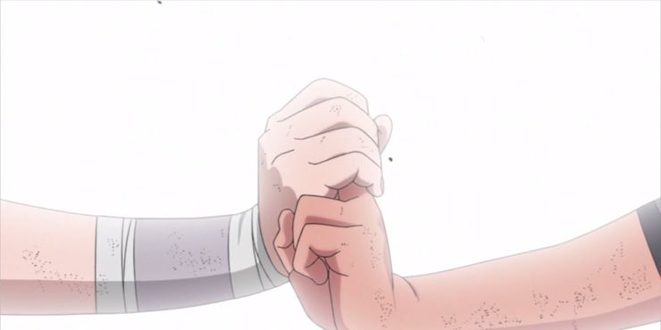 Su nombre. ha sido considerada durante mucho tiempo como una de las mejores películas originales de anime y el final de la película ciertamente ayudó a darle ese título. A lo largo de la película, los fans sienten esta sutil tensión entre estos dos personajes, deseando desesperadamente que se conozcan. Los dos están separados por líneas de tiempo y realidades alternativas hasta que salvan a todos. Al final, los dos finalmente se encuentran como adultos y, está implícito, se enamoran de nuevo.