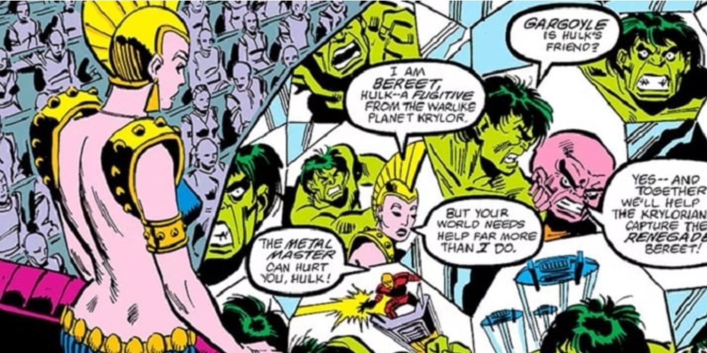 “/> Originaria del planeta Krylor, Bereet es una artista techno. Usó su obsesión por la tecnología para hacer películas sobre Hulk, quien le sirvió de musa. Si bien con frecuencia intentaba encontrar otros temas, siempre terminaba volviendo con Hulk. Al filmar juntos, finalmente se unieron y formaron una relación romántica. Su tiempo juntos como pareja fue corto, porque es posible que Bereet solo haya estado en la relación para mantener a Hulk como su estrella de cine. De todos modos, su tiempo juntos terminó y ella se mudó a Hollywood para continuar haciendo películas, poniendo fin efectivamente a una historia extraña que trajo una nueva relación para Hulk.