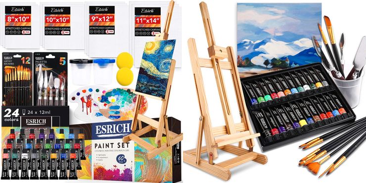 Disponible por $50, el Esrich Acrylic Paint Set viene con un caballete de madera, 12 pinceles, 12 lienzos, 5 espátulas, 2 paletas, 24 colores acrílicos, 2 esponjas y cubos para guardar utensilios. Aquí hay suficiente para que un artista pueda dibujar cualquier cosa, desde paisajes hasta ser un artista para Vengadores historietas.