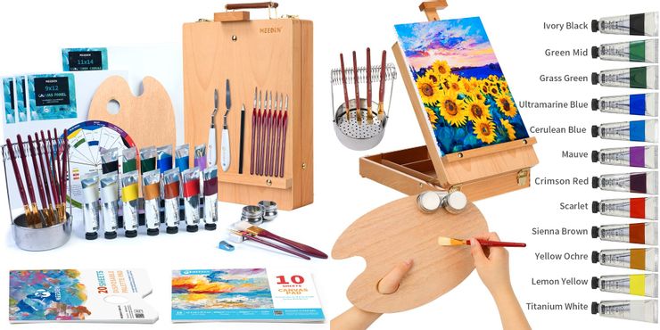 Encontrado en Amazon, el juego de pintura al óleo profesional de 46 piezas de MEEDEN es el kit perfecto para aquellos que no tienen mucho espacio para trabajar pero que no quieren sacrificar demasiada funcionalidad.