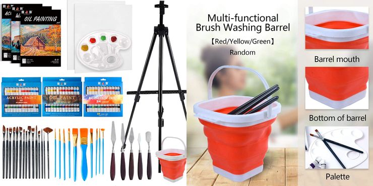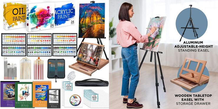 Otro kit que presenta los tres tipos de pintura junto con dos caballetes diferentes. Por casi $ 100 en Amazon, este kit también viene con 8 lienzos, 40 pinceles, cuadernos de bocetos para cada tipo de pintura, dos paletas, cuchillos de pintura e incluso una bolsa de transporte.