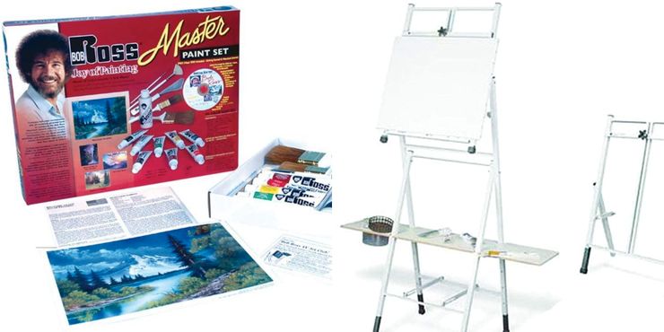 Teniendo en cuenta que esta es la marca oficial de Bob Ross, no debería sorprender que cueste tanto. El juego de pintura al óleo Bob Ross Master Artist permite al comprador replicar esencialmente su juego en el programa. Desde el caballete de estudio de aluminio hasta los mismos pinceles que utilizaba.