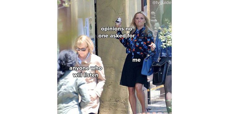 Ha habido muchas iteraciones de la imagen en línea, pero este meme agrega algunos comentarios divertidos, lo que sugiere que Madeline representa cómo se siente la persona cuando quiere lanzar sus opiniones a casi cualquier persona que las escuche, ya sea que las hayan preguntado o no. . Los fanáticos del programa saben que Madeline siempre tenía algo que decir, tenía una opinión sobre todo, a veces podía ser egoísta y se deleitaba en estar en el centro del drama y los chismes.