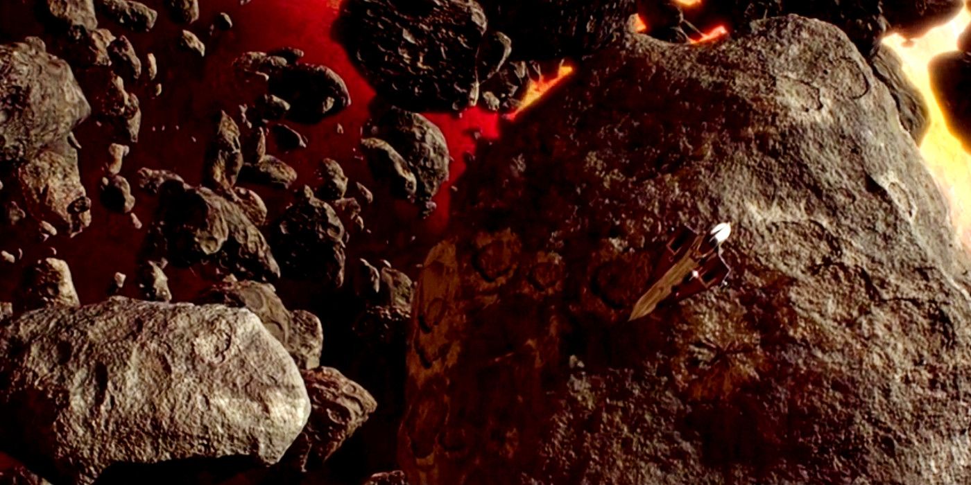 Si una pelea cuerpo a cuerpo entre Obi-Wan y Jango no fuera suficiente para la audiencia, Lucas los hizo enfrentarse en un campo de asteroides sobre Geonosis. Los implacables ataques de Jango y su increíble potencia de fuego constantemente tenían a Obi-Wan huyendo, al menos hasta que el Maestro Jedi desechó hábilmente sus piezas de repuesto frente a los misiles y luego se escondió detrás de un asteroide hasta que Jango desapareció. Por supuesto, nadie podría haber adivinado que Boba Fett conocía el truco de Han Solo gracias a Obi-Wan en El imperio Contraataca.