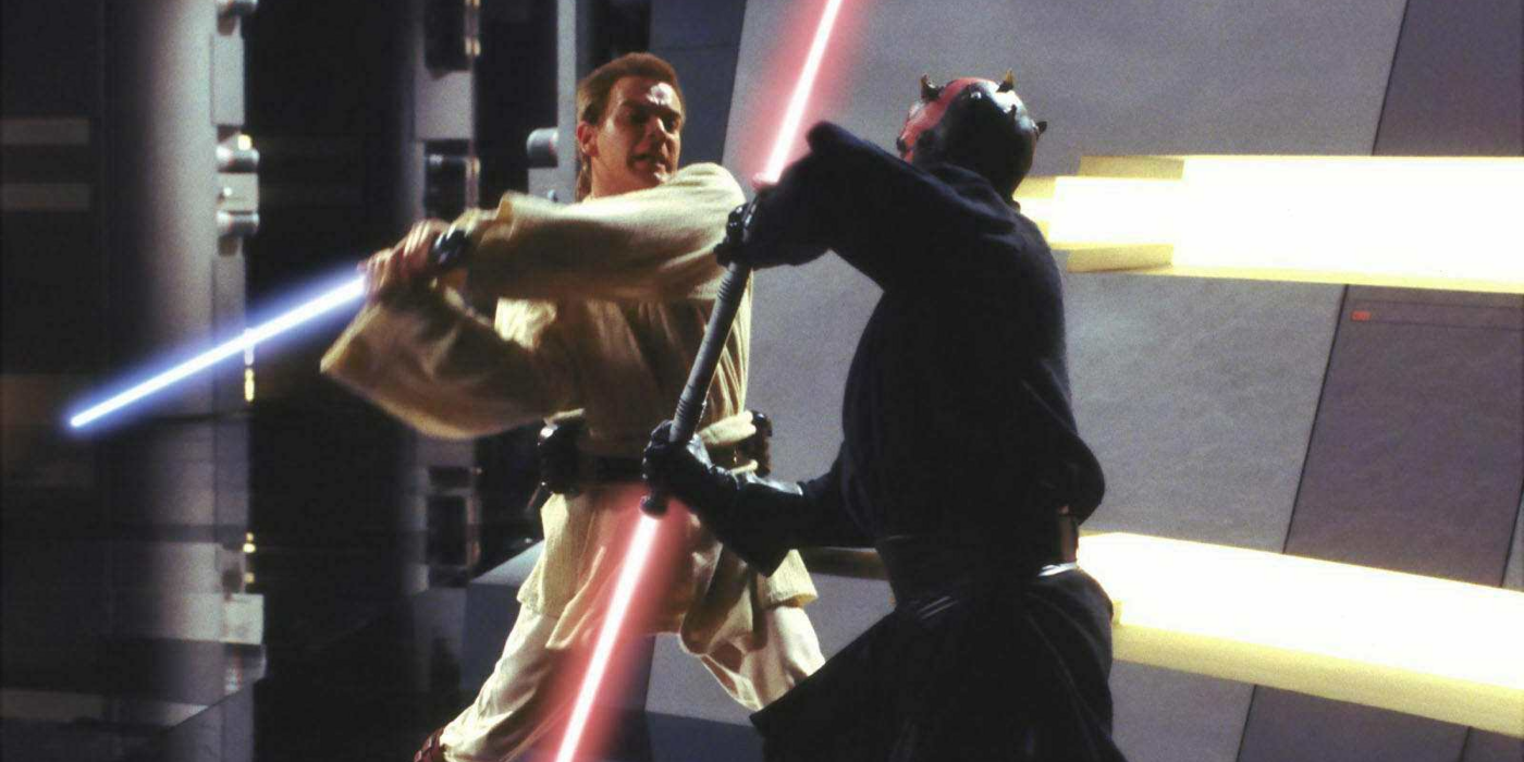 La nueva ferocidad de Obi-Wan hizo de su pelea con Darth Maul uno de los duelos con sables de luz más intensos de la trilogía de la precuela. Ewan McGregor y Ray Park mostraron un atletismo y una agresión notables que les permitieron perderse en sus respectivos personajes. Obi-Wan saltando del pozo y cortando a Maul por la mitad con el sable láser de Qui-Gon se convirtió en un icono Guerra de las Galaxias momento y preparó el eventual regreso del Lord Sith en Guerra de las Galaxias, la guerra de los clones.